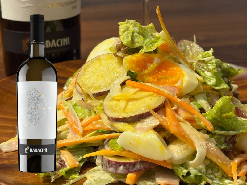 【アグリワイン×めしわいん】白ワインが進む!さつまいもとハムのとろたまシーザーサラダ